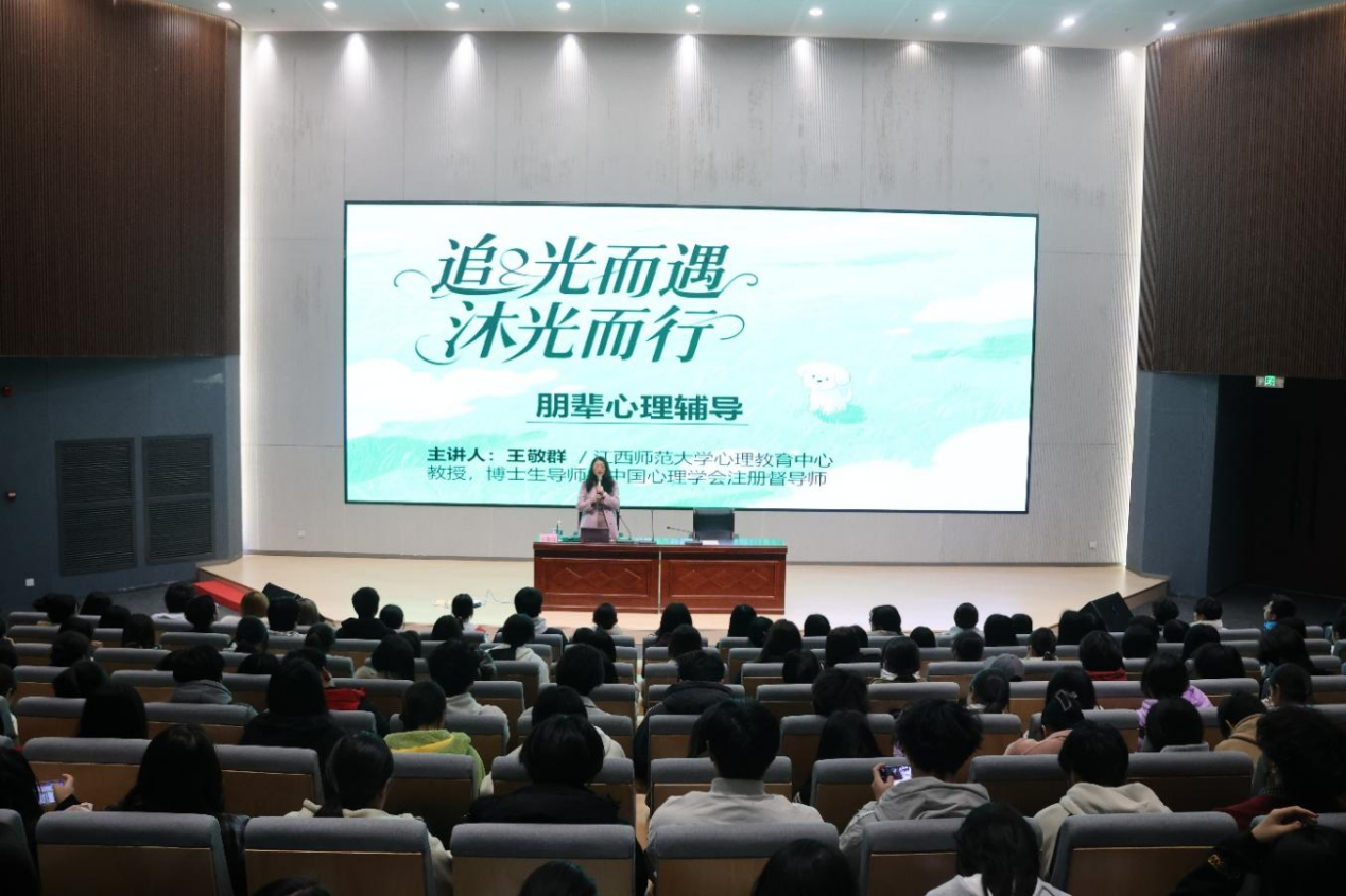 为进一步明确心理委员的角色定位与核心职责,提升其心理健康服务能力,筑牢校园心理健康防护网,12月2日,我校大学生心理健康教育中心举办了主题为“追光而遇 沐光而行——朋辈心理辅导”的心理专题讲座。本次讲座由江西师范大学心理教育中心教授、博士生导师、中国心理学会注册督导师王敬群主讲,校党委委员刘锋主持,心理中心专兼职教师、全校各班班级心理委员以及宿舍心理联络员近千人参与培训。